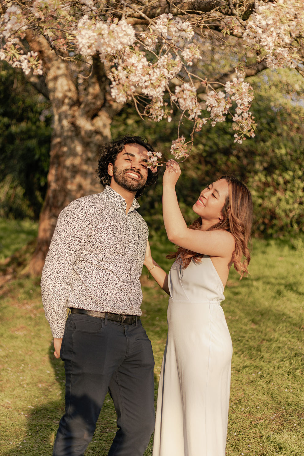 Capturing the fleeting magic of Spring. This collection documents S & A’s engagement amidst the iconic cherry blossoms of Queen Elizabeth Park, timed perfectly with Vancouver’s golden sunset hour.